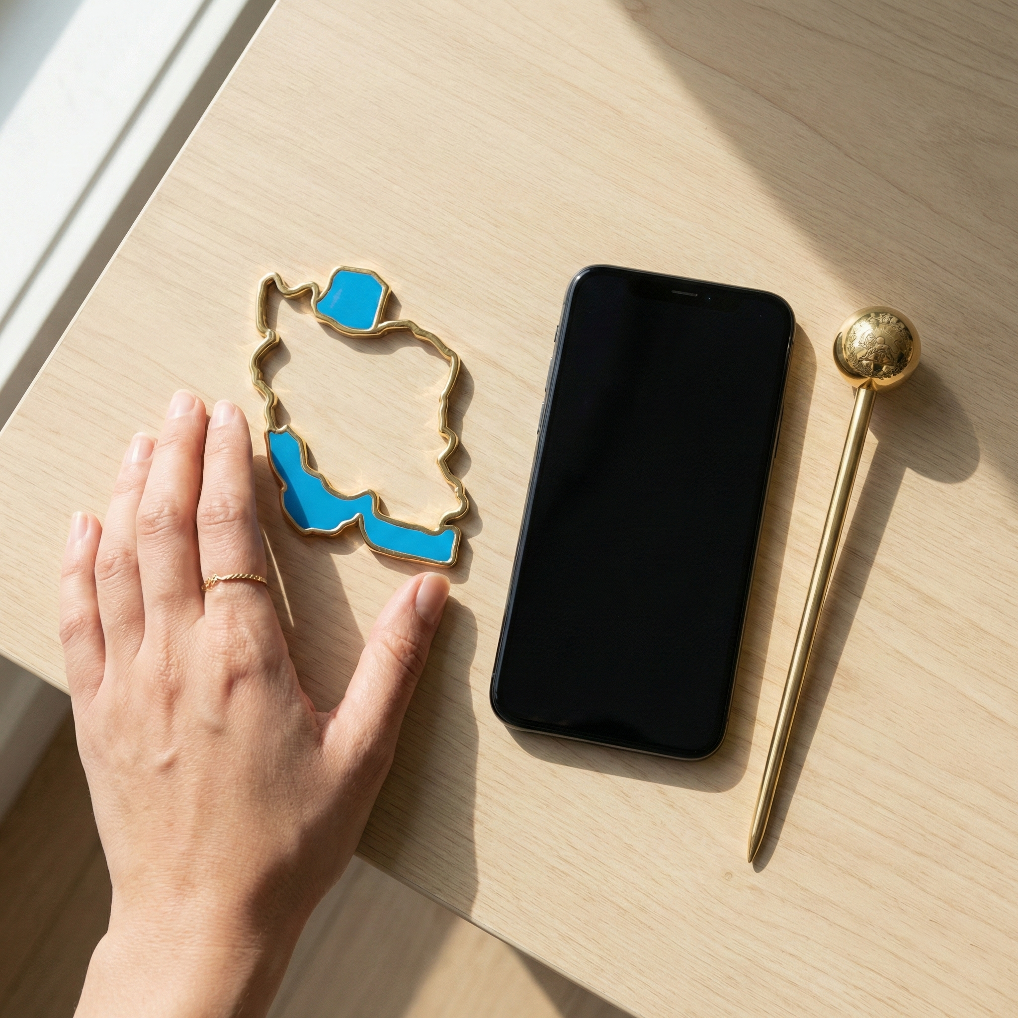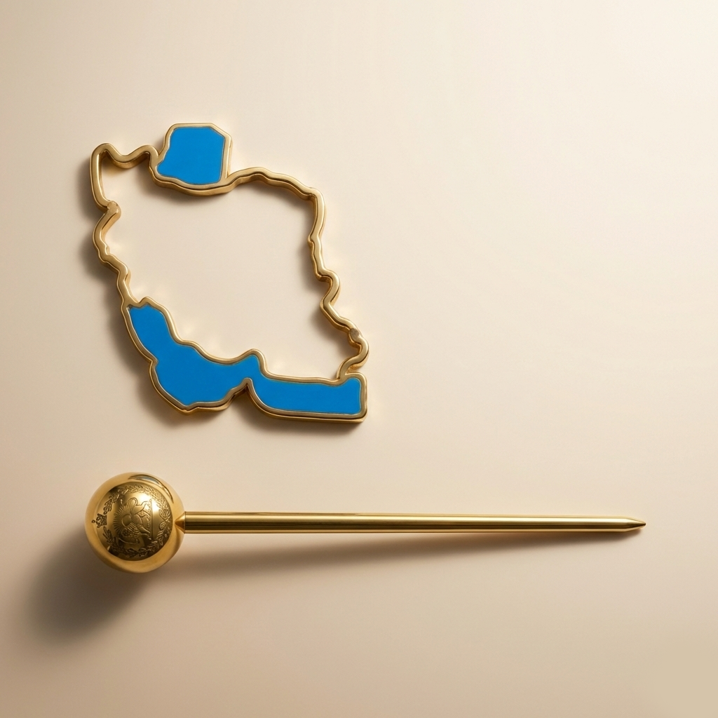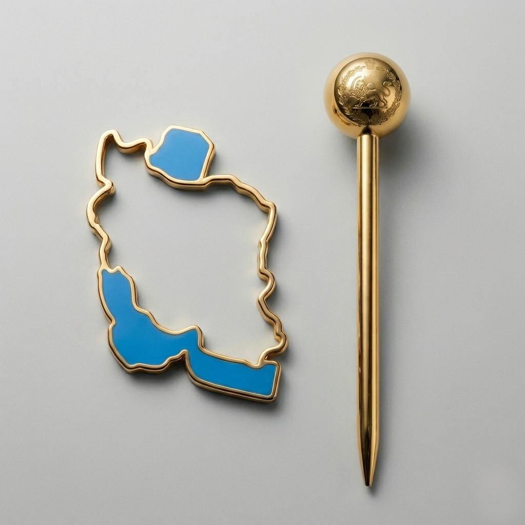 • اجزا: میله طلایی کانزاشی + قاب نقشه ایران با جزئیات آبی فیروزهای